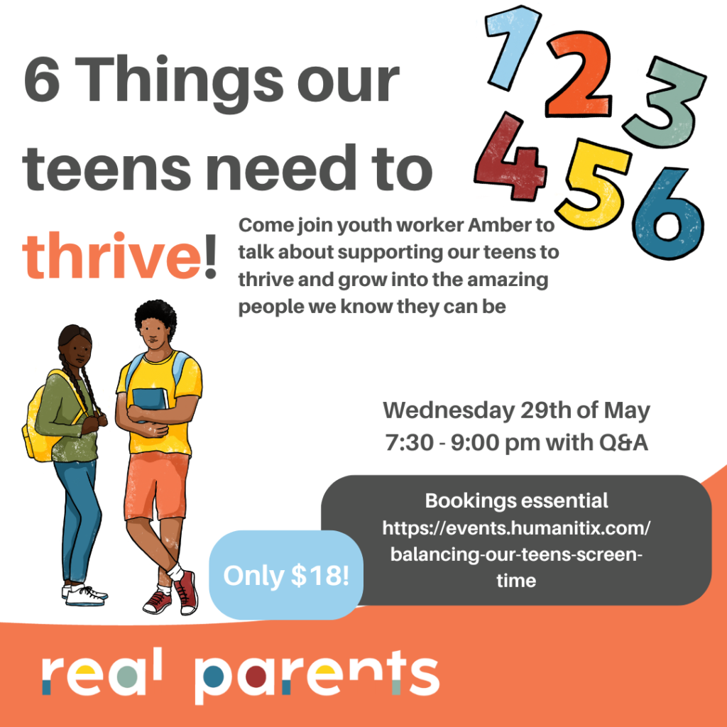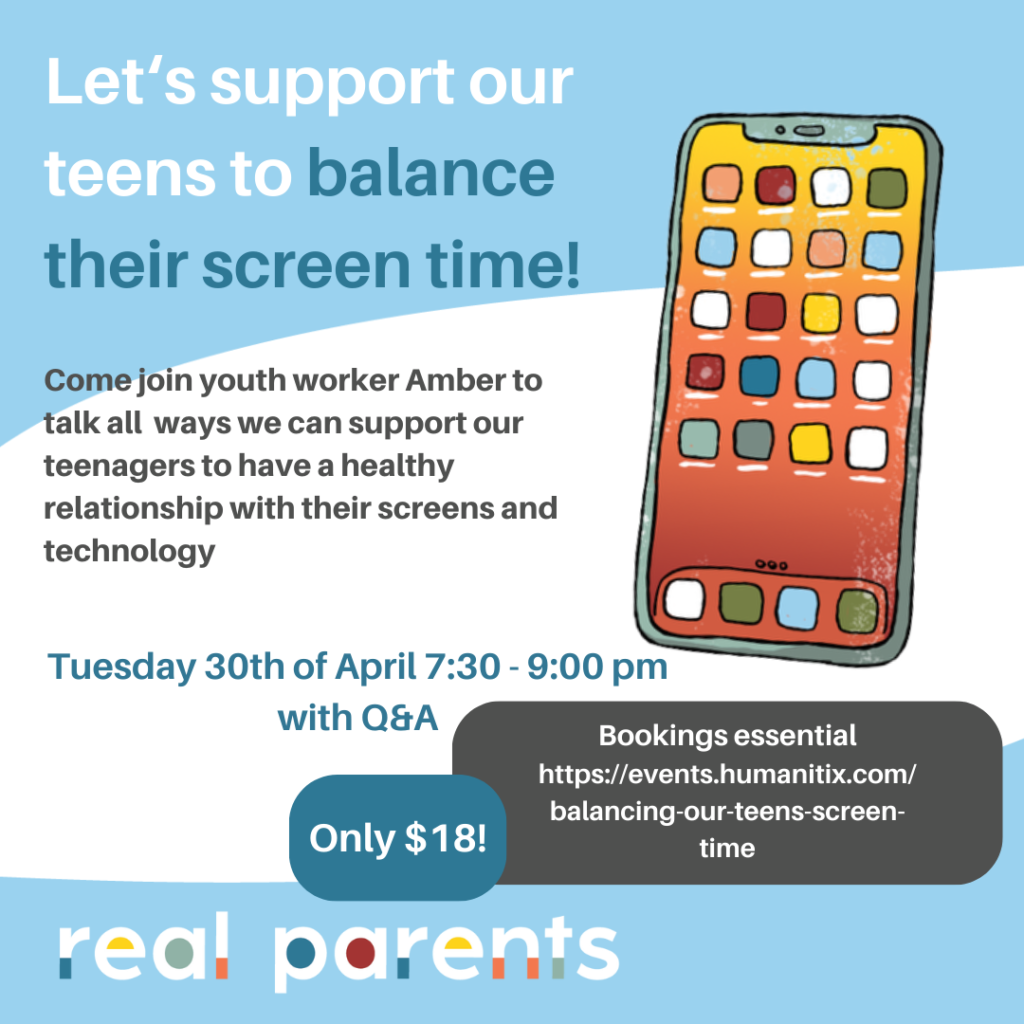 The ‘Real Parents’ group are excited to announce an upcoming webinar all about managing teens and their screen time on the 30th of April and then a webinar all about the things our teens need to thrive on the 29th of May.