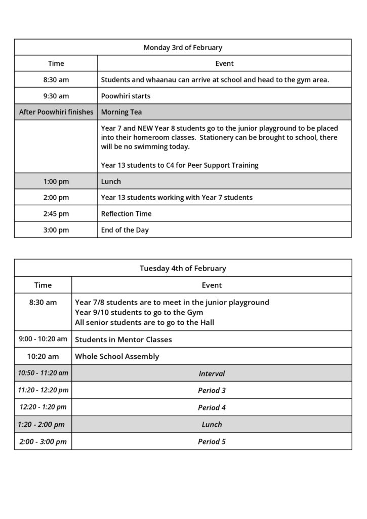 We hope you’re all refreshed and ready for another exciting year. Please see the timetable for the first two days at school below.